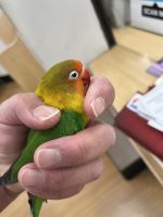 Fischer’s Lovebird FOUND in Woodcrest, Riverside, California aprox 12pm. Walgreens parking lot at Van Buren & Troutwein. Very sweet, hungry & tired. Does not have band