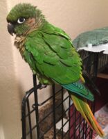 Appears to be older bird and very tame, eats from hand and perches on finger. “GA” included on band.