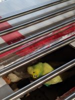 Budgie in Footscray today (8/12/2021) at around 6 pm on Park Street. Very fluoro green and yellow feathers. Blueish tail feathers. Darker coloured beak.