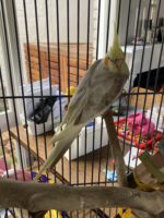 Very tired and scared (was being swooped by other birds) we managed to catch her (?) and are keeping her safe while we search for the owner.