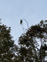 I spotted what I think was a green parrot in the cemetery in Davis CA this evening—September 29 2025. It was high in a tree just north of the Covid memorial, by the benches. I did not get it down or get a super clear view of it (it was getting dark), but I wanted to share this sighting in case someone in the area is looking!