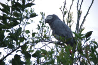 The bird is roosting in a tree in our yard. I’ve gotten it to eat several pieces of apple from a bowl I handed up to it, but it won’t come down to my hand.