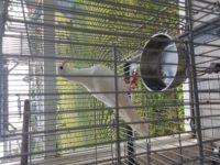 Pretty frightened and skinny, but safe now with plenty of food, water, and shelter. Please describe.