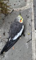 Bird found in our backyard. Unable to fly, but was walking around. Is it yours? Does anyone know what I can do with it? Have it in a shoe box. I’m ignorant about birds, but looks like a Cockatiel, I think.