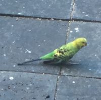 I saw this parakeet on my deck about 2 hours ago. It was pecking around on the ground and hung out for about an hour before he flew away. I think he is nearby.
