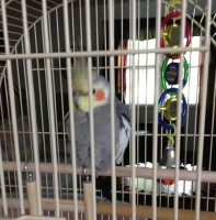 Friendly,male . vet says about 1 1/2 years old. Sings a bit.