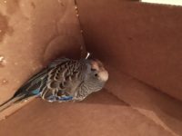 Blue budgie flew into our yard last evening while being chased by a feral cat. Friendly, healthy, clearly someone’s pet. Brought inside for safety and warmth.