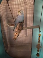 Bird was found in a cage on the side of the road that had fallen out of a car or truck. We think there were other birds in the cage, but this bird was the only one in it. It seems to be in good condition.