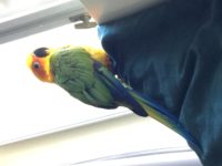 This precious conure was rescued/found by a very sweet and kind person who lives in Pompano Beach. He says the parrot just landed on him and happily went along with him.:) We both agreed that the parrot would stay at my place until owner is located…since I have the whole set up already and lots of time during the day to keep an eye on him/her:) So, I’m hoping to find it’s owner as I’m sure he misses his/her little companion:)
