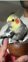 a cockatiel landed on my head when i was in the driveway. knowing it’s probably someone’s pet, we brought him inside!
