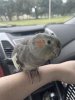 Female, doesn’t talk, extremely sweet, loves to be on people and not in cage, call light gray face other than a little yellow around her Eyes