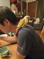 Do not panic. It is safe. I urgently bought a cage and prey for the bird. The owner must be looking for the bird hard. Hope I reach the owner!