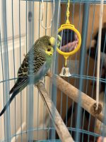 Found in Brentwood CA Very sweet tame bird. Would love to find his owner. He/she is blue with yellow head.