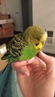 Found male (?) Budgie/Parakeet on the east part of the Burnt Bridge Creek Trail in Vancouver, WA. Has a band with letters OK and last 3 digits 768. As you see from the picture mostly green and yellow with a bright teal tail. I have him (?) at my apartment, I live near the trail, but I cannot keep him for very long. I will contact Parrot Perch and also post on parrotalert.com. Thank you