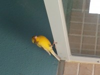 Found yellow canary with green band on legFF