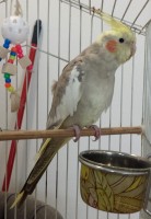 Found near McLaughlin Elementary School. This one is pretty tame (unlike the other cockatiel I found, who is quite hand-shy). Flew to my cousin’s shoulder from the tree she was in; will ‘step up’ readily.