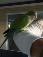 Well behaved and very loving – this quaker parrot must be someone’s pet.