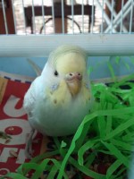 When I found the bird she was white but has regained her color since – light green with a yellow capped head.
