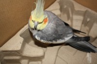 Found grey cockatiel in Golden Park Neighborhood. FLight feathers have been clipped…hopped to our house.