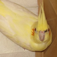 White and yellow cockatiel found downtown Chicago 9/12/2013.