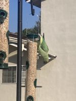 Has been coming to my bird feeder. Leaving food and water for it and an open cage just in case. Pretty sure this is someone’s pet and not a wild parrot.
