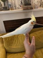 This bird has an owner that has got to be missing it. She is so well taken care of and extremely well trained. She is fully flighted with no band. As you can tell from the pictures she is all white with yellow markings. She is so incredibly friendly and snuggly even with people she has just met. Guess is that she probably wasn’t out in the elements for very long, but she seems like a strong flyer so could’ve covered some distance. Again she was found last Thursday on the Chelmsford lowell MA line, if you know anyone who is missing a super sweet girl. Please reach out with any leads!