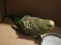 Green and yellow parakeet, possibly a boy, banded. Found on the corner of 108th and Amsterdam in Manhattan.