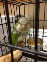 This little guy was hanging around people’s birdfeeders until a lovely person was able to pick him up and get him to me where I am fostering him. He/she is a Quaker and doesn’t have a lot of identifying markers. If this is your lost bird, have a photo to bring for comparison.