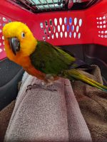 This bird was found in Bellevue and is currently at the Nebraska Humane Society on a stray holding period. Letters on band number are DNA. Very social and likes to stand on people’s shoulders! If you would like to reclaim, please contact the Nebraska Humane Society’s Lost and found at (402)-905-3410 during business hours (12pm-7pm Monday-Friday, 12pm-5pm Sat-Sun). Be prepared to provide proof of ownership.