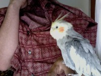 Does not appear to be injured or to be missing any feathers. Wings are not clipped, wants to get all necklaces and glasses and taste them