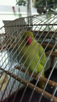Bird showed up in the backyard, has a metal tag on it’s ankle with a code. He is being taken care of in (a birdcage) in the house while we try to find the owner.