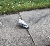 This pigeon had a green band around it’s leg and seemed used to people. It seemed to have an injured wing. We brought it to our local Humane Society and were assured that they would try to find the owner. Please contact the Humane Society in Coon Rapids, MN for more information