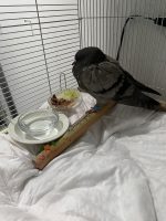 Found a pigeon, was able to catch so looks tired. Not eating or drinking yet. Hopefully it perks up soon.