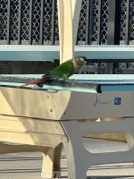 This bird was found at Del Mar High School in San Jose CA. Very friendly and appears well taken care of. He was just really thirsty and hungry and flew to the pool during swim practice. I would really like to find the family as I’m sure they are very upset about their missing pet and the little guy is probably home sick.