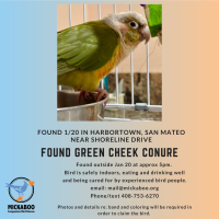 - Species: Conure - Green Cheek (See species list for details)
