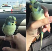 Found in town center near Witchduck rd. Budgie is now with VB Animal Control. Pet Paradise on Kellam Rd has more information.