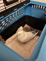 White bird found in Glendale, CA. He is very docile, quiet and friendly. He was sitting on my patio for almost an hour and did not fly away when approached so I believe he is someone’s pet. I currently have him safely with me. Please contact if this is your lost bird.
