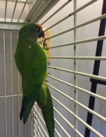 Neighbor found about a week ago. I offered a spare cage and they asked that we take it in. Little guy is in good health and spirits, just waiting for its parents to claim him/her.