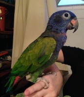 Blue head, green body, some red on tail, beautiful