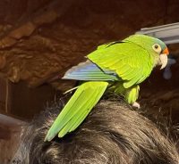 Friendly and sweet- seems to have been well socialized. Found flying around our yard.