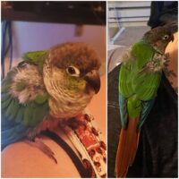 Very sweet conure found in the tree next to our patio. Off Cornell and Amberglen next to Tanasbourne mall. VERY sweet and only wants cuddles and to ride on shoulder. Is banded! Please reach out with missing code.