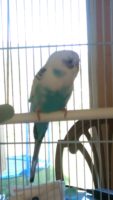 Sweet little bird was found sitting in the driveway. His back is white with gray spots and blue on bottom and belly.