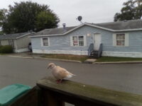 We have seen this bird around since about mid June. He is very tame and comes up to us. At first, we thought he was a wild bird as he eats with the morning doves every day. But I showed a picture to a dove vendor at the Midwest Bird Show & they said it would have been someone’s pet bird. We are concerned about whether s/he can survive this winter.