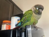 Extremely friendly loves sitting on your shoulder and loves being close to you. Very talkative, loves blueberries and is not scared of dogs!