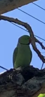 We had a parrot experienced neighbor respond. He was able to lure the bird to take a Walnut, two pecans, and a pistachio out of his hand but he would not step up onto his finger. The bird did fly down to investigate flock sounds playing on a loop. The neighbor returned at dusk with a drop cage but no sighting, possibly roosting for the night. Feel free to call me 650 773-0602 Gail with any questions!!