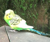 Green parakeet with band on leg. Found in Newton Centre, MA on May 23-16.