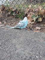 Blue,white and gray. It has a band on it’s little leg we do not know if it is a boy or girl sorry.