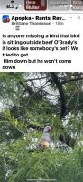 I tried to lure it but he was too high up in the tree. Employees of restaurant said they left bread on a ledge and it came down to eat it but it flew off when they tried to retrieve it.