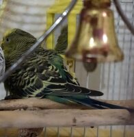 I think it is a boy. The sere is dark and somewhat crusted. He sits low on his legs – maybe he is tired. He seems to enjoy the bird swing, so he has seen a swing in his own cage ))
