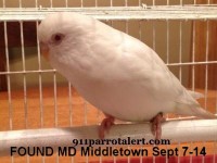 Cute little white bird. I believe it’s a parakeet/budgie. Banded.